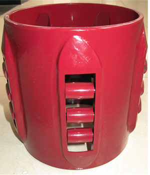 安裝時將扶正器園箍上的銷孔開口向上,扣在套管上,合箍后穿進(jìn)上下兩個銷子,將鎖銷片砸扁,防止銷子退出,檢查無誤后入井內(nèi)。