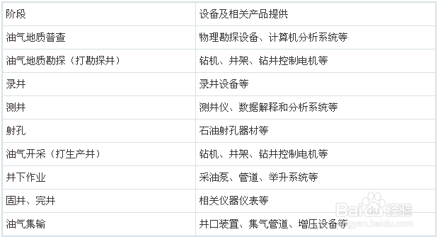 三、鉆采階段所需設(shè)備及產(chǎn)品在油氣地質(zhì)勘探階段,主要需求設(shè)備與產(chǎn)品為鉆機(jī)、井架、鉆井控制電機(jī)等,在油氣開(kāi)采階段,主要需求設(shè)備與產(chǎn)品為鉆機(jī)、井架、鉆井控制電機(jī)等。具體見(jiàn)下表。圖表:石油勘探開(kāi)發(fā)階段所需設(shè)備及產(chǎn)品分析